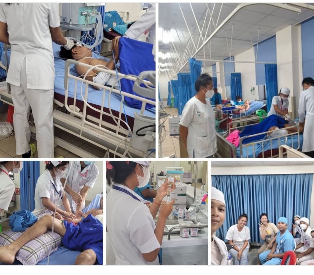Tout au long de la semaine, les matinées sont consacrées aux soins intensifs, permettant une immersion dans la pratique quotidienne des équipes locales. Les après-midis, place à la transmission : Leakhena anime des cours sur la prise en charge de la douleur à destination des infirmiers de médecine, de réanimation et des élèves infirmiers.